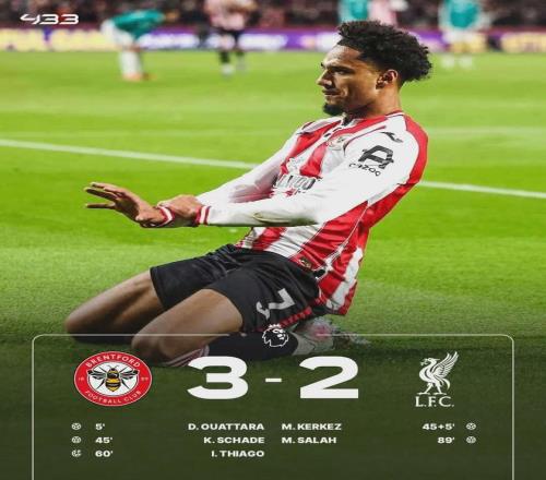 易邊再戰(zhàn),蒂亞戈點(diǎn)射破門,第89分鐘,薩拉赫爆射扳回一球,但是紅軍還是在客場2-3不敵布倫特福德,在英超聯(lián)賽遭遇4連??!