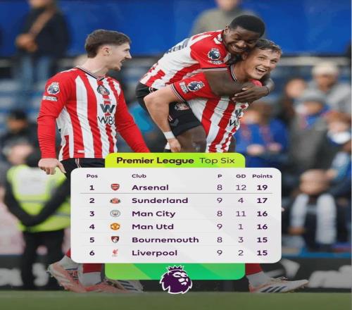 桑德蘭本輪英超在客場2-1逆轉(zhuǎn)切爾西,目前9輪聯(lián)賽過后,暫時(shí)排在了聯(lián)賽第2位,黑貓就是本賽季的英超黑馬!