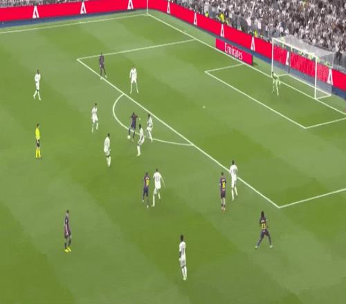 亞馬爾前場強行突破,隨后皮球被解圍出底線