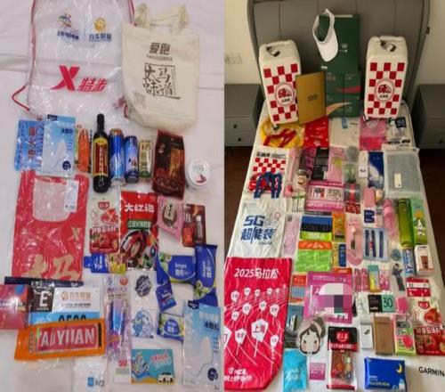 為了能回應跑者和贊助商的熱情(鈔能力),各大城市各顯神通。最出圈的方式是把馬拉松變成超長流水席,力求讓跑者跑完胖三斤,還允許連吃帶拿,因此不少人感慨:跑一場馬拉松,最累的是腮幫子。