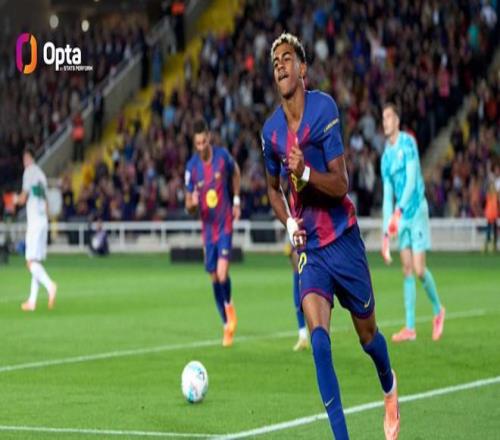 根據(jù)Opta的統(tǒng)計,本場比賽的進球是18歲的亞馬爾西甲出戰(zhàn)80場所打進的第17球,在進入21世紀之后,只有姆巴佩在年滿19歲之前的五大聯(lián)賽進球數(shù)(23球)比亞馬爾更多。